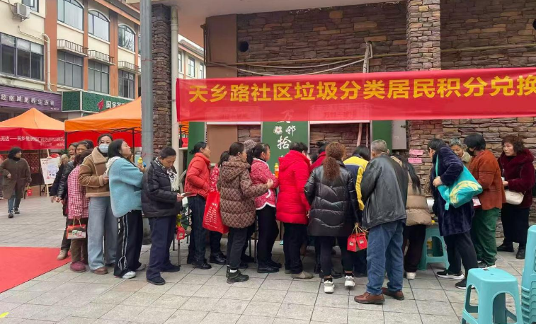 近日,天乡路社区居委会内格外热闹,居民们手持“绿色生活积分卡”,有序排队兑换食用油、大米、牙膏、垃圾袋等生活用品。这是社区推行垃圾分类积分兑换制度以来的一个寻常场景,却生动映照出居民环保意识与社区治理水平的双重提升。